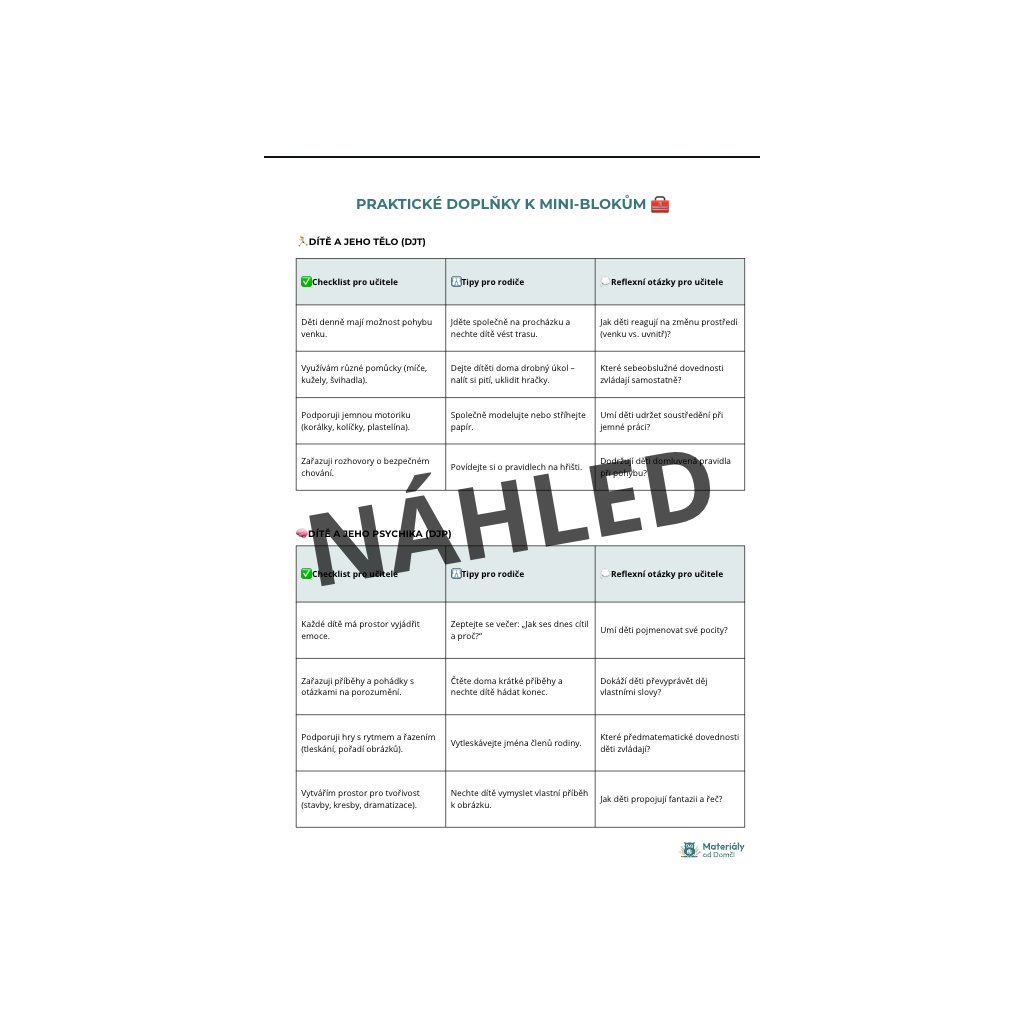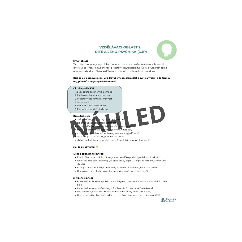 ✨ Díky e-booku budeš mít jistotu, že pracuješ v souladu s RVP PV, ale bez složitého papírování. Získáš jasné a použitelné pomůcky, které ti dají přehled a klid.