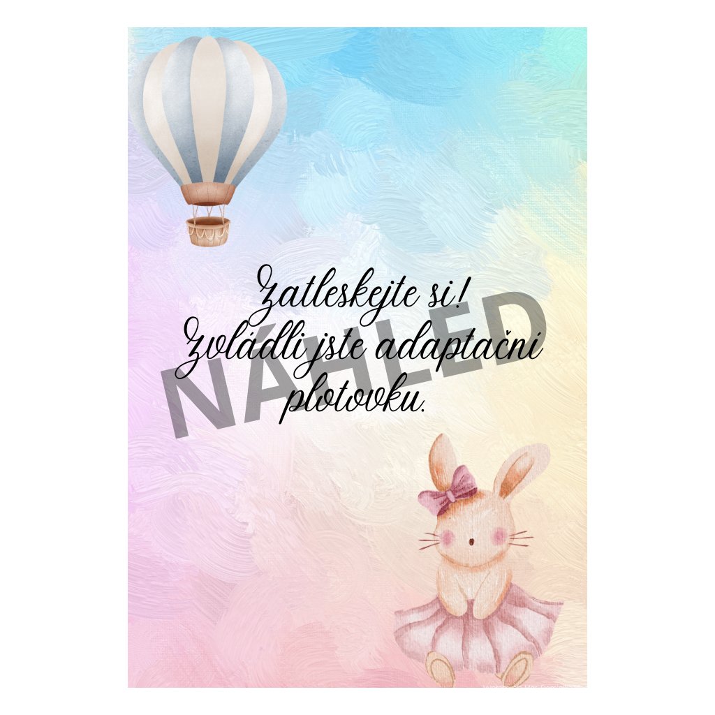 jemný pastelový podklad s horkovzdušným balónem a roztomilým králíčkem