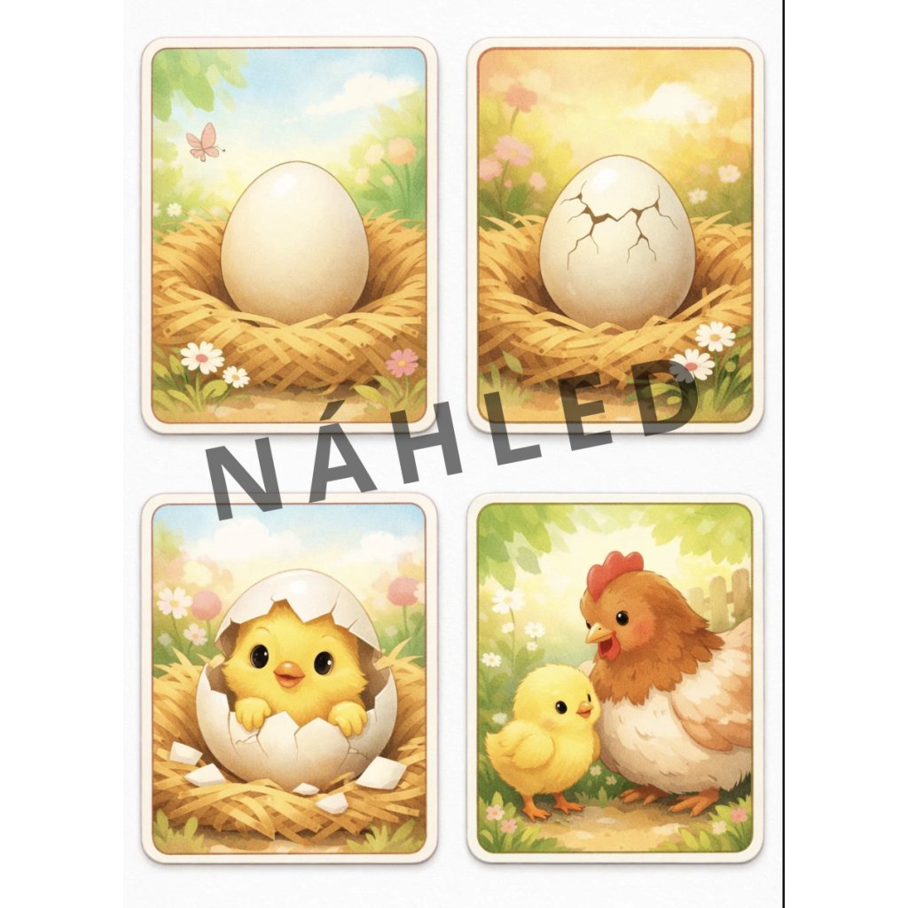Díky těmto kartičkám si děti skládají příběh krok za krokem, přirozeně mluví, přemýšlí a učí se – aniž by měly pocit, že „se učí“ 🐣✨