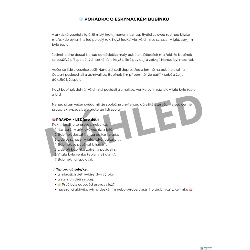 ❄️ Výprava do eskymácké vesnice je kompletně připravený týdenní vzdělávací projekt pro mateřské školy, který děti vtáhne do života Inuitů v Arktidě – citlivě, hravě a odborně správně.