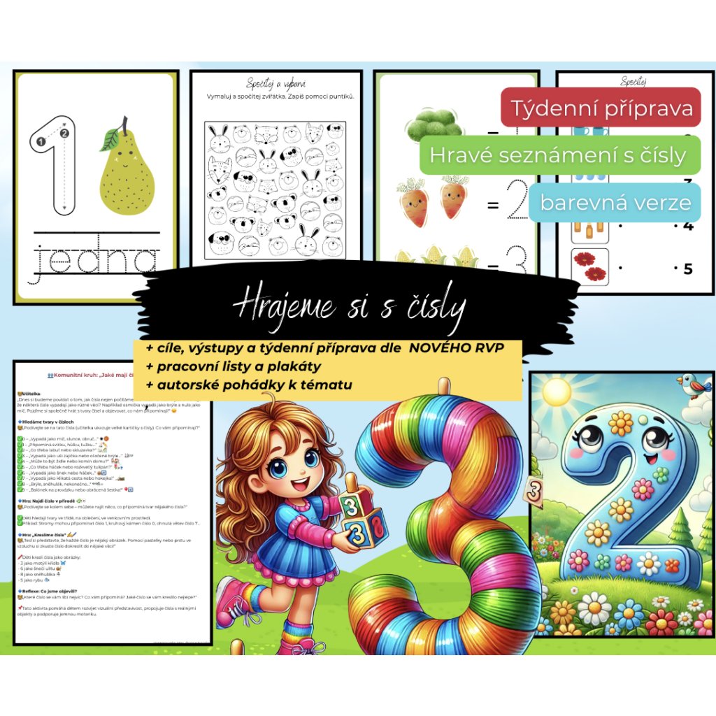 Děti se hravou formou naučí počítání, porovnávání, třídění a orientaci v číselné řadě. Materiál obsahuje pohádky, hry, pohybové aktivity a pracovní listy pro školky i domácí vzdělávání! 📖🎲