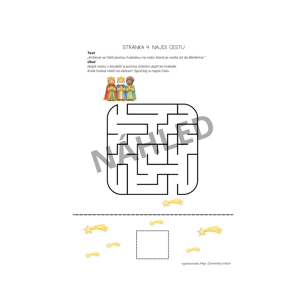 Děti putují za hvězdou, plní jednoduché úkoly, vybarvují a prožívají tradici Tří králů hravou formou.