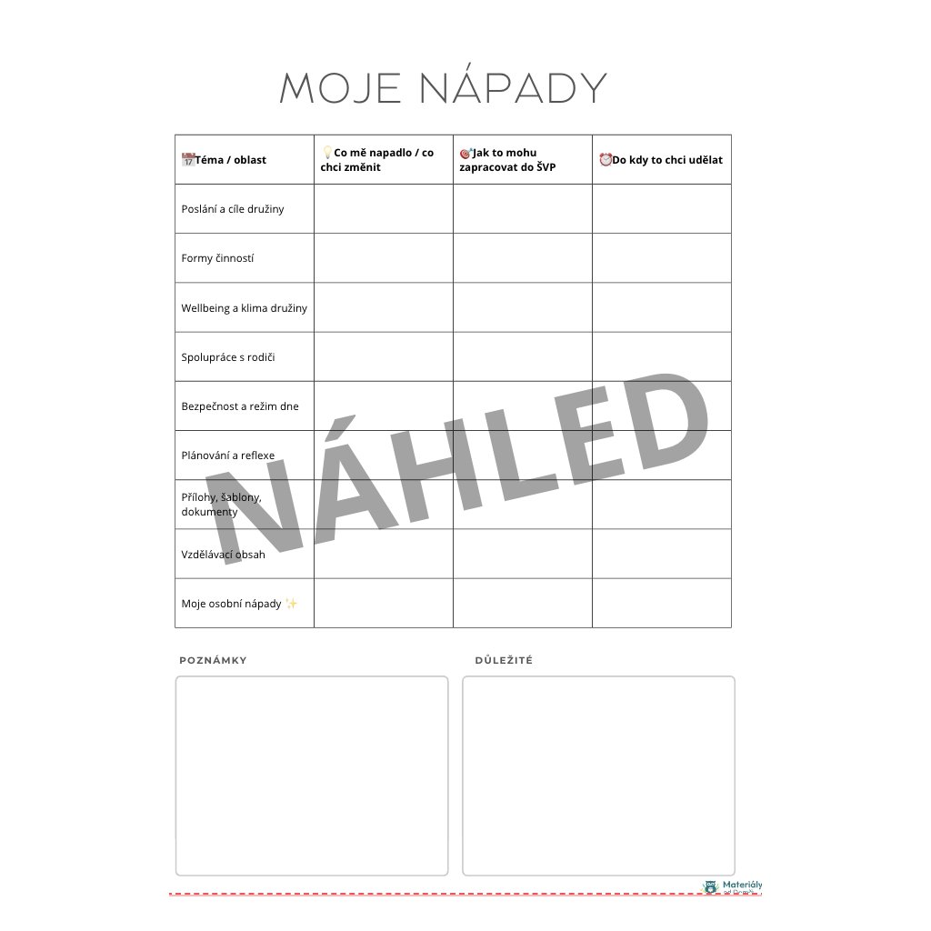 ✅ Bonusové stránky: Checklist hotového ŠVP, Tahák formulací, Moje nápady k zapracování do ŠVP.