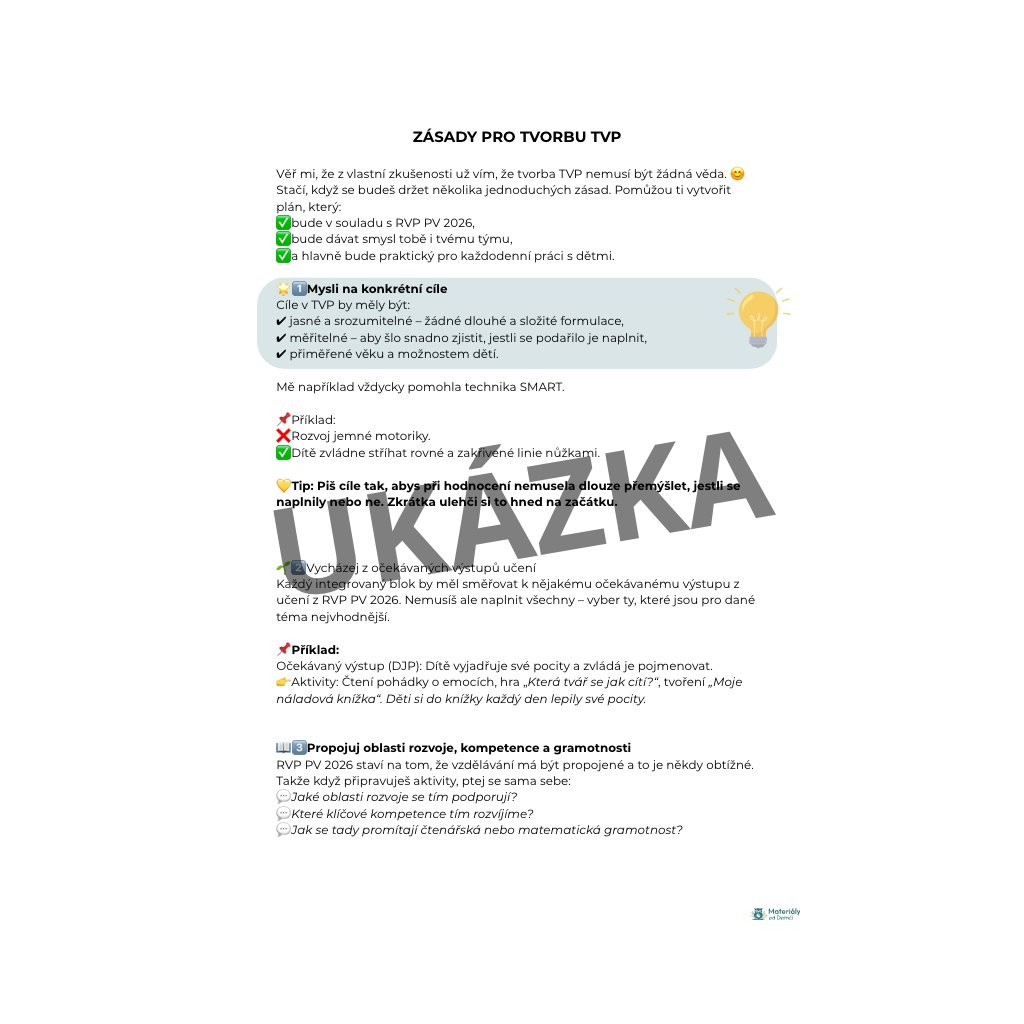 📘 „Jak na TVP“ – Praktický e‑book pro učitelky MŠ podle RVP 2026. Nauč se tvořit třídní vzdělávací plán krok za krokem, bez stresu a složitostí. S tipy, ukázkami a šablonami ke stažení!