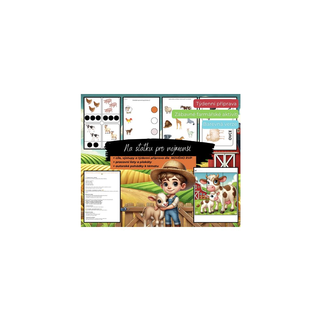 Děti se seznámí s životem na statku, poznají domácí zvířata a jejich mláďata, naučí se jejich zvuky a zjistí, co nám dávají. Materiál obsahuje pohádky, pohybové hry, výtvarné činnosti a didaktické úkoly. Perfektní pro mateřské školy i domácí vzdělávání! 🌾✨