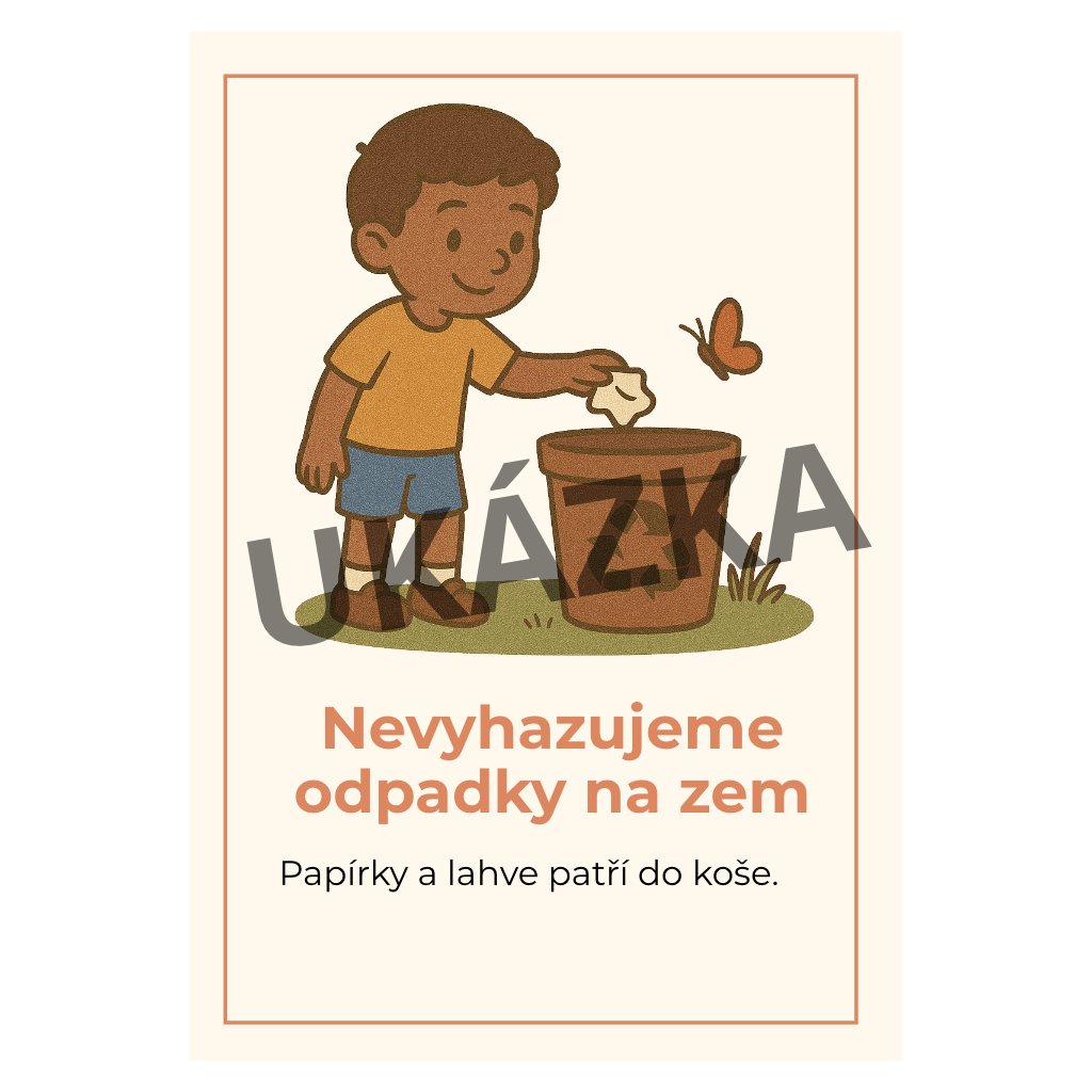 ✅ Ekologická témata jako „Chráníme přírodu“ a „Nevyhazujeme odpadky na zem“