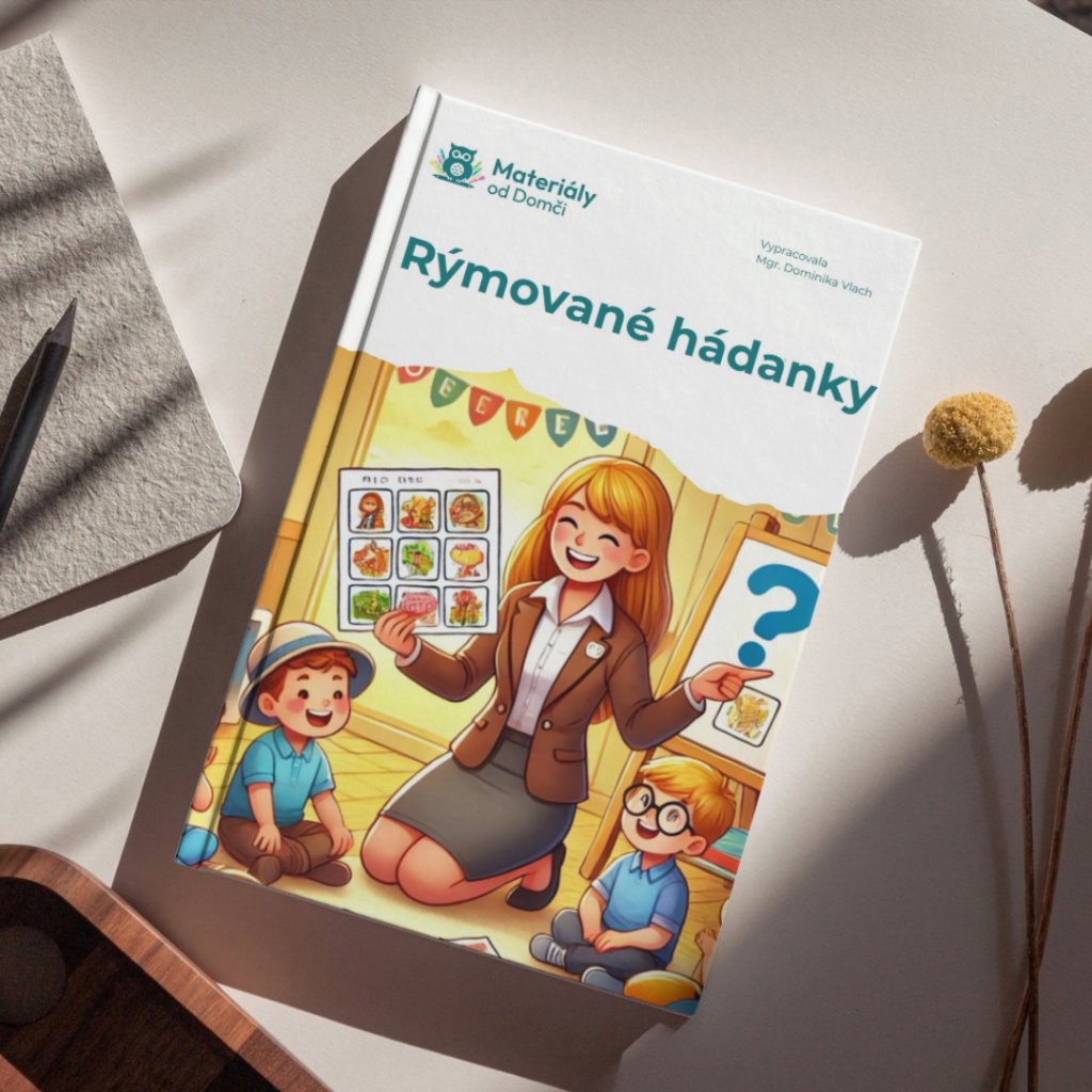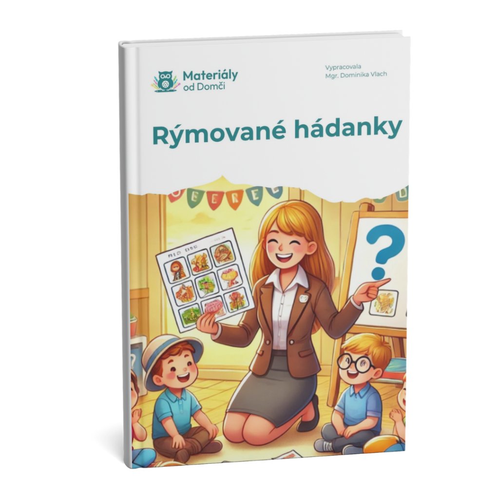 Tento materiál obsahuje sadu kartiček s rýmovanými hádankami, kde děti hádají podle rýmu, co je na obrázku, a správně ho přiřazují. Hra podporuje sluchové vnímání, jazykový cit a logické myšlení, což pomáhá při rozvoji předčtenářských dovedností.