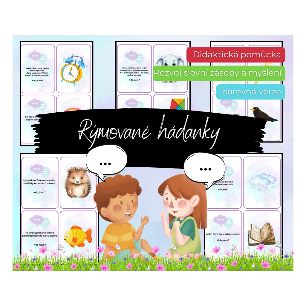 📄 Barevné kartičky s rýmovanými hádankami 🧩