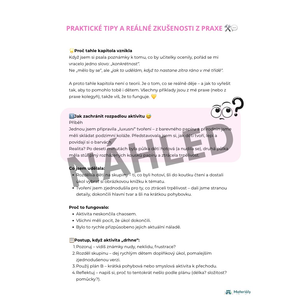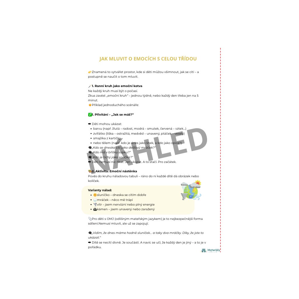 Začátky jsou plné emocí – u dětí i učitelek. V e-booku najdeš dechová cvičení 🧘♀️, pohádku o vzteku s otázkami, checklisty, dialogy do těžkých situací i plakáty do třídy.
