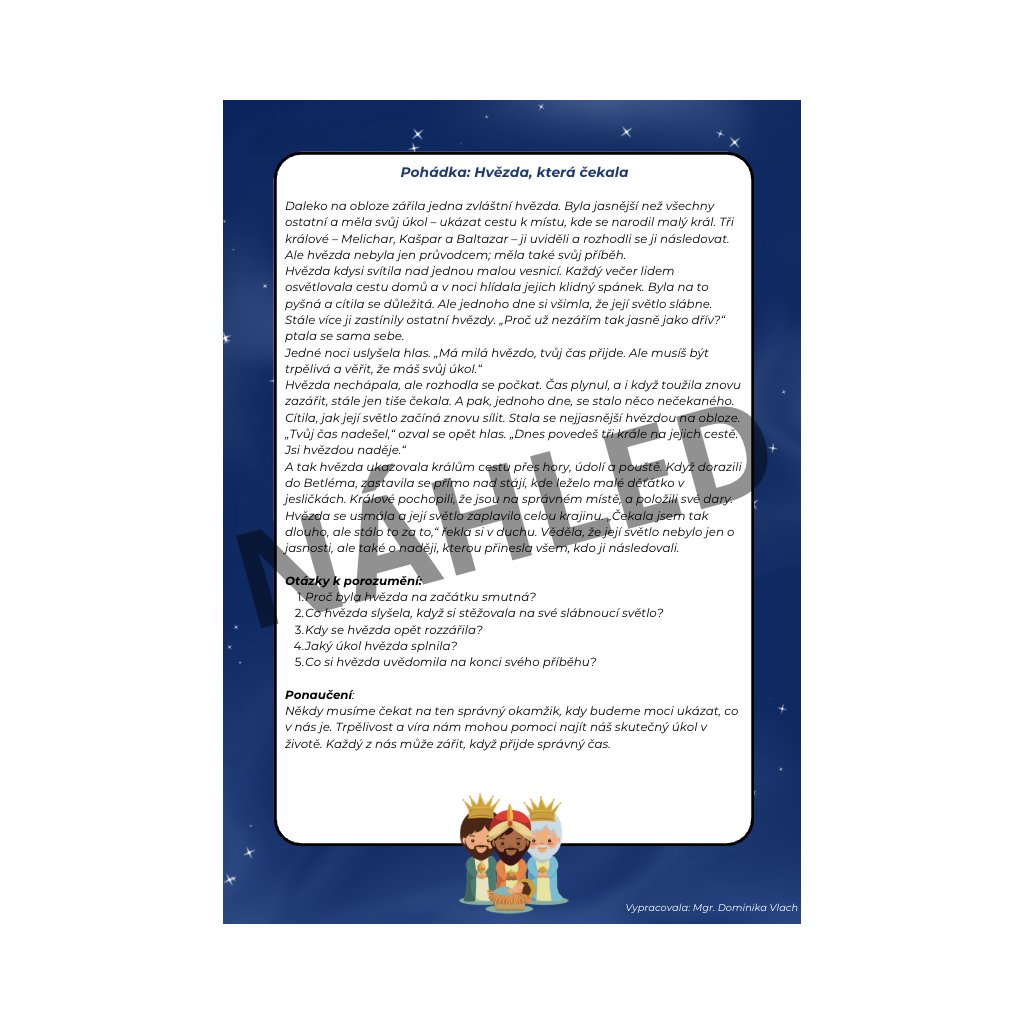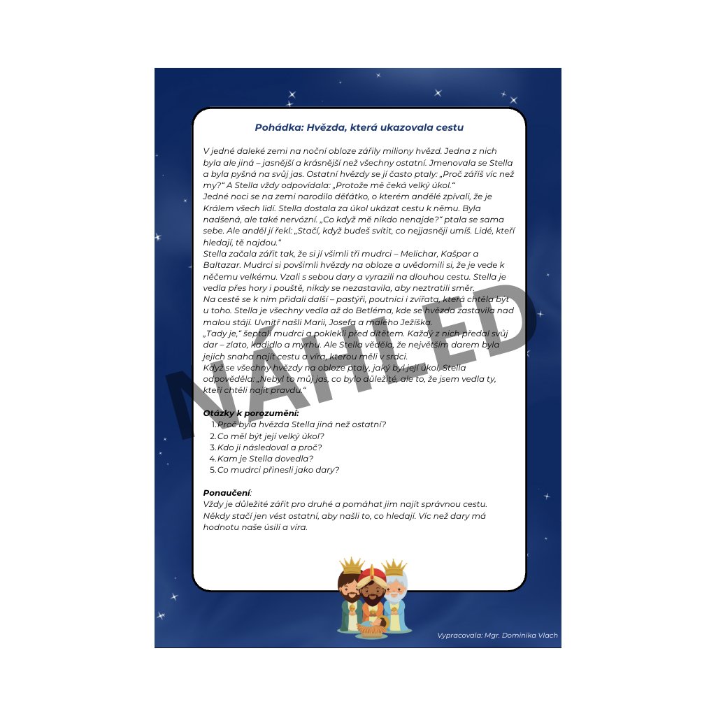 Děti se hravou formou seznámí s příběhem Tří králů, významem darů, cestou za hvězdou i důležitými hodnotami – laskavostí, odvahou, trpělivostí a vírou.
