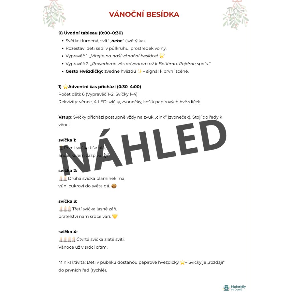 • kompletní scénář vánoční besídky (pro 25 dětí, s možností zkrácení)