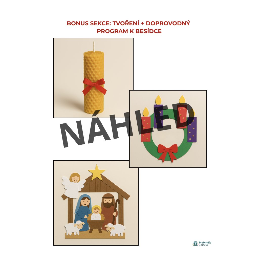• bonusovou sekci: tvoření (svíčky z vosku, věneček, papírový Betlém) + reflexi s dětmi po besídce