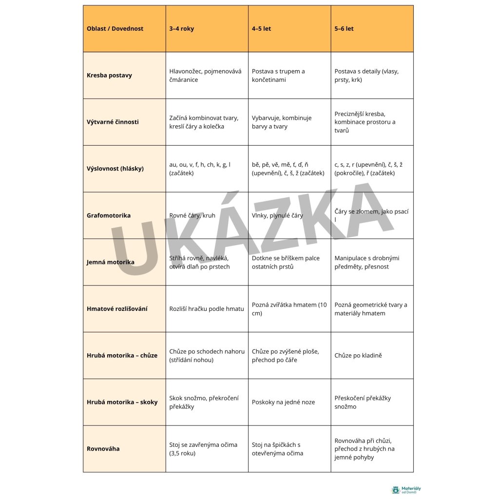 ✅ Přehledný rozvoj dovedností dětí ve věku 3–6 let