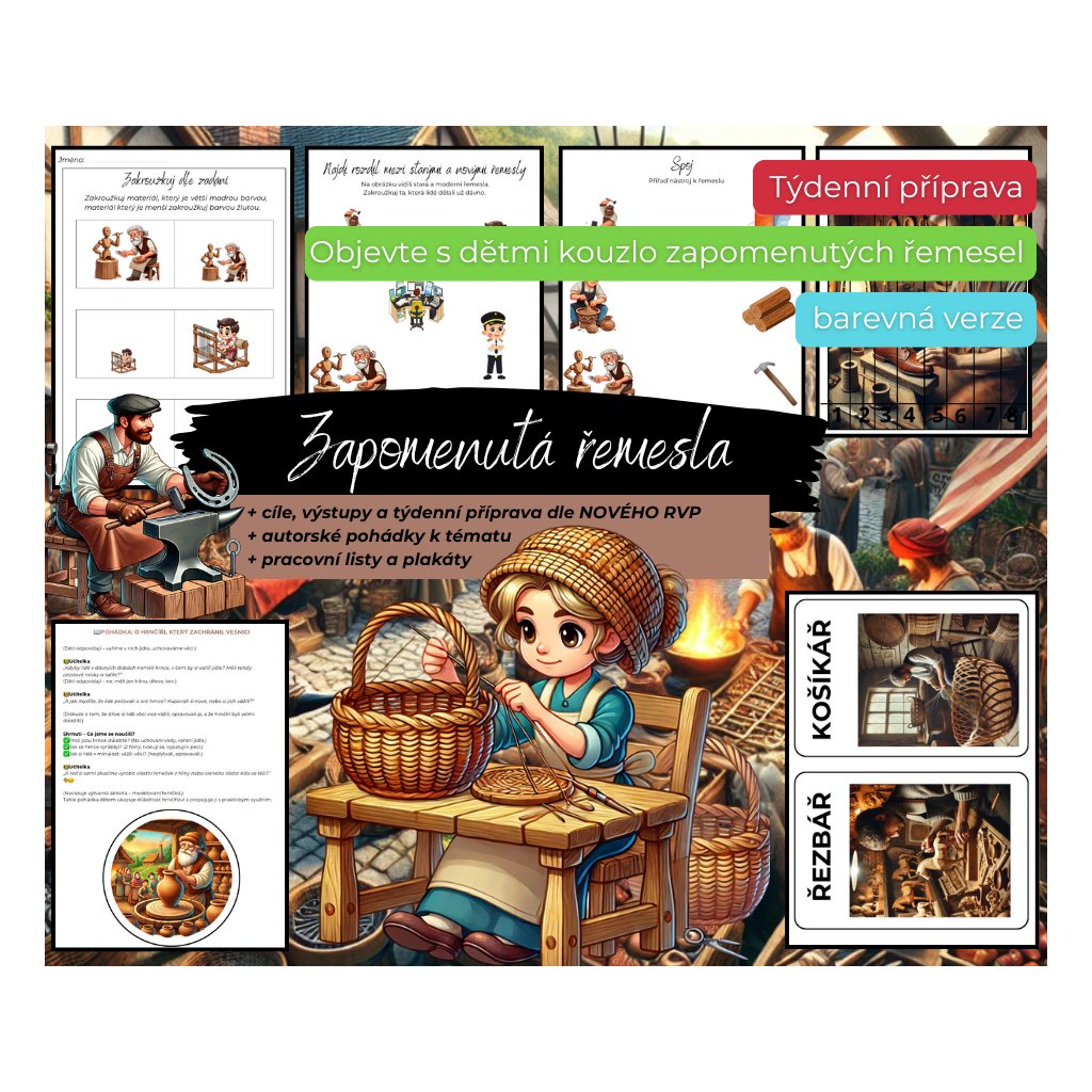 Objevujte s dětmi tradiční řemesla, která formovala svět našich předků. Tento kompletní týdenní plán hravou formou přiblíží dětem práci kovářů, hrnčířů, tkalců, košíkářů a řezbářů.