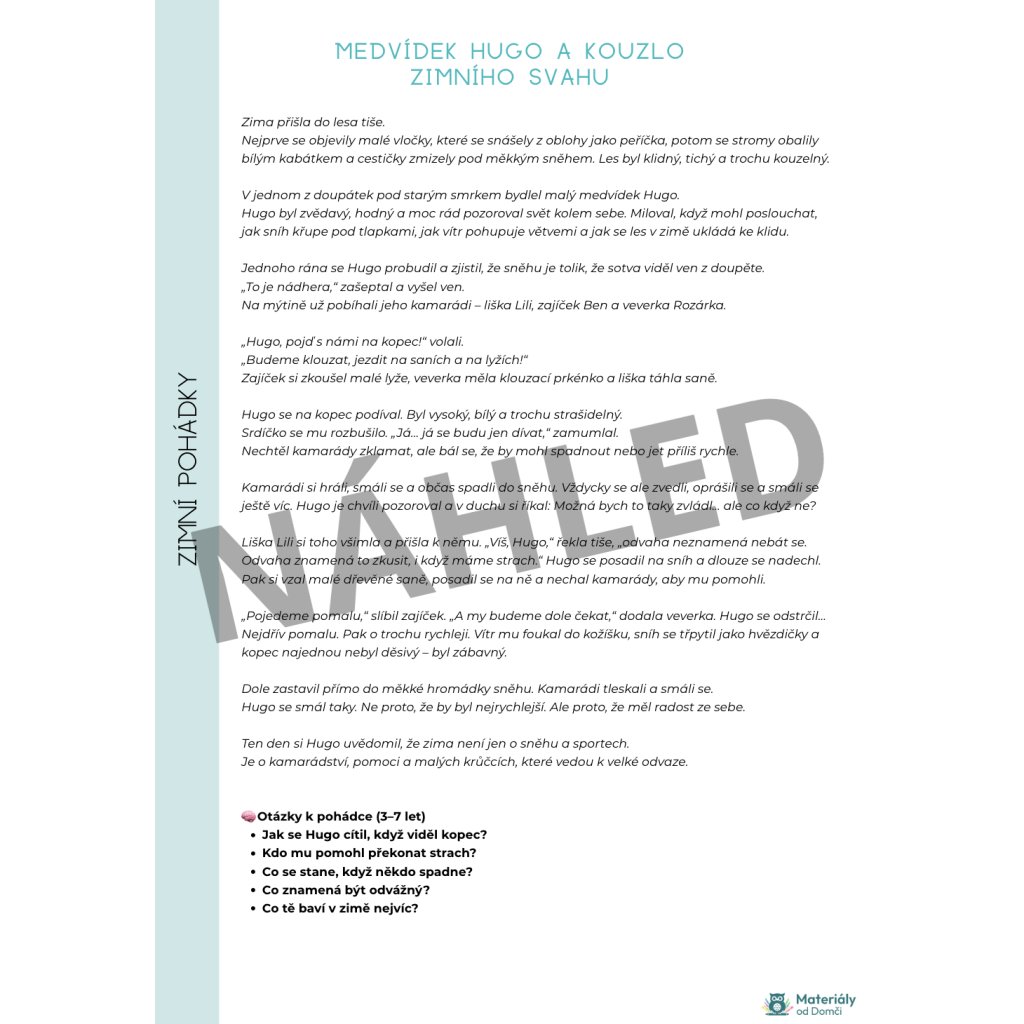 Zimní pohádky z kouzelné knihy jsou hřejivým souborem zimních příběhů pro děti 3–7 let, které propojují čtení, rozhovor i aktivní práci dětí 👧🧒