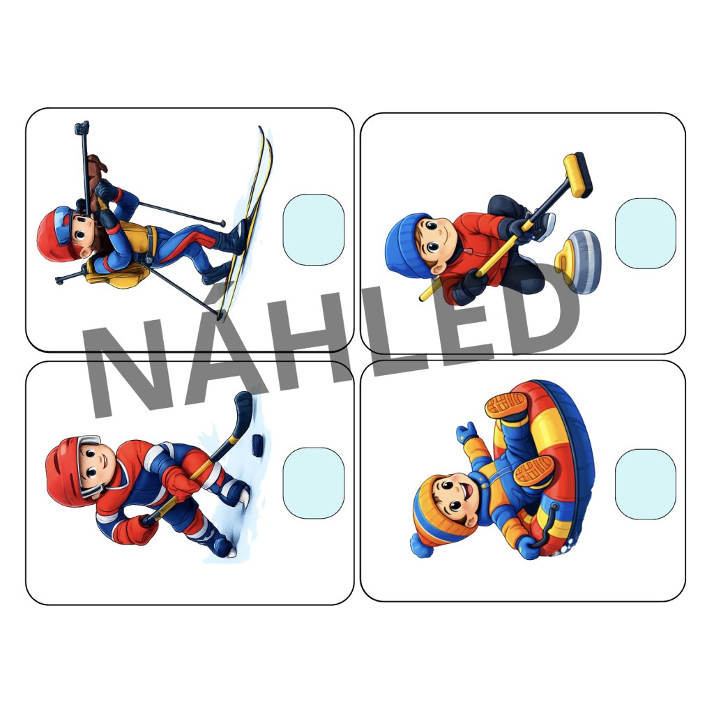 Hravé didaktické kartičky, které děti okamžitě vtáhnou do zimních sportů a naučí je správně vybírat, co ke kterému sportovci patří.